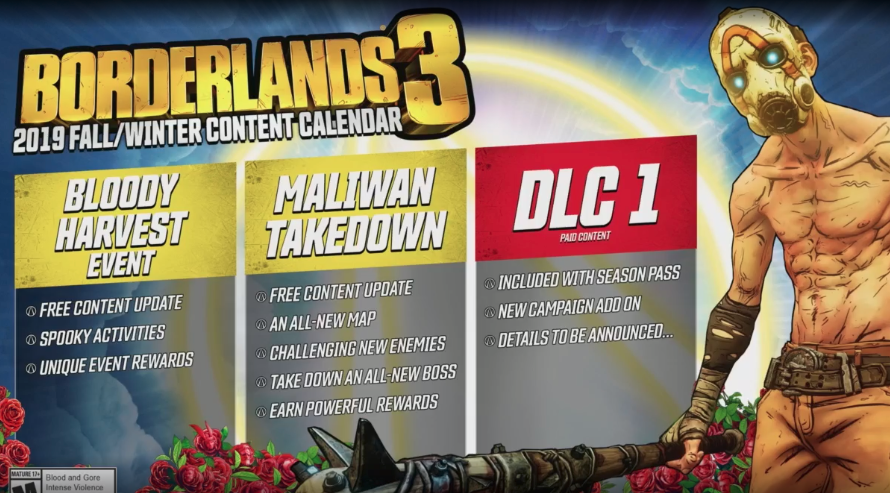 Na zijn release op 13 september krijgt de game een tijdelijk Halloween event genaamd Bloody Harvest. Volgens Gearbox omvat het Halloween-event een heleboel enge activiteiten en zijmissies waarmee je unieke loot kan scoren. Later dit jaar komt ook Maliwan Takedown, een grotere DLC die een volledig nieuwe map toevoegt aan de game. Inclusief een nieuw type vijanden en bossfights.