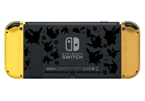Geen wonder dat de beide controllers dan ook een opvallende kleur hebben. De linker Joy-Con is lichtbruin voor Eevee en de rechtse is geel voor Pikachu. Als we de achterkacht van de Switch bekijken, zijn er zelfs silhouetten van beide Pokémon op afgebeeld.